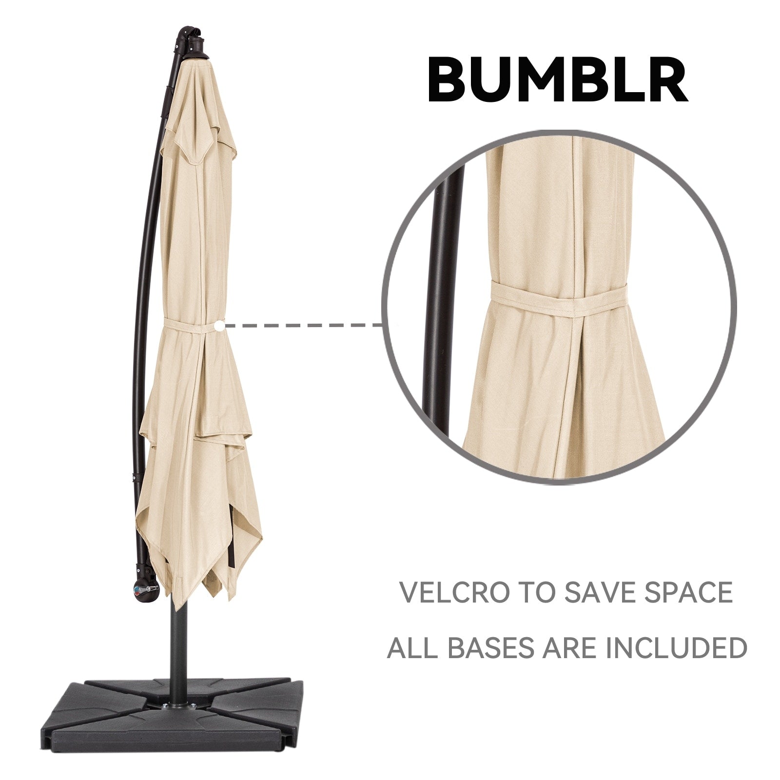 Parasol déporté à manivelle en acier de 10 pieds avec base lestée