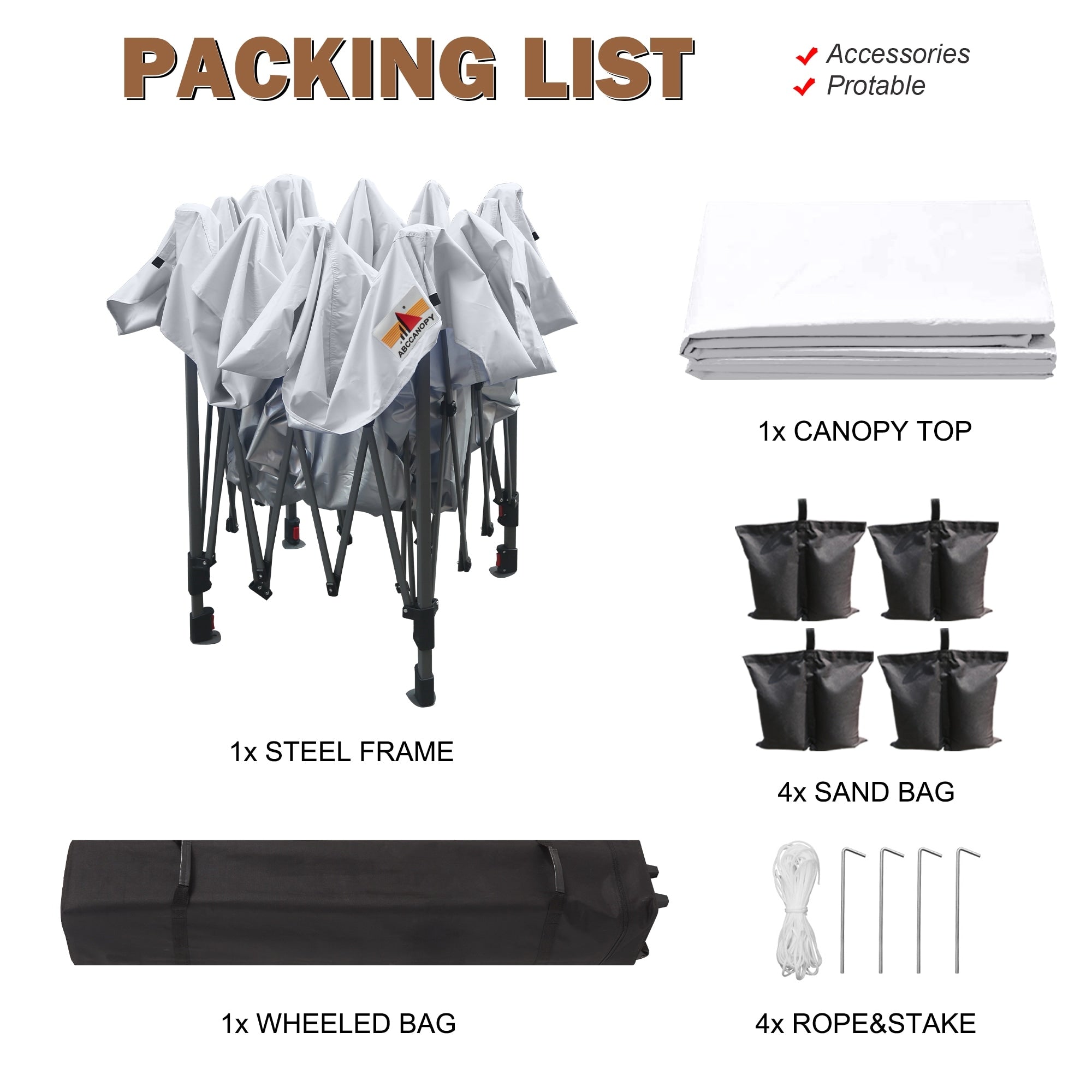 - 【PORTABILITÉ】Vous pouvez facilement ranger cet auvent portable dans son sac à roulettes. Une sortie sans tracas ! Ses roulettes facilitent les déplacements. Compact, ce sac à roulettes peut également être placé dans le coffre de votre voiture pour transporter vos autres affaires.