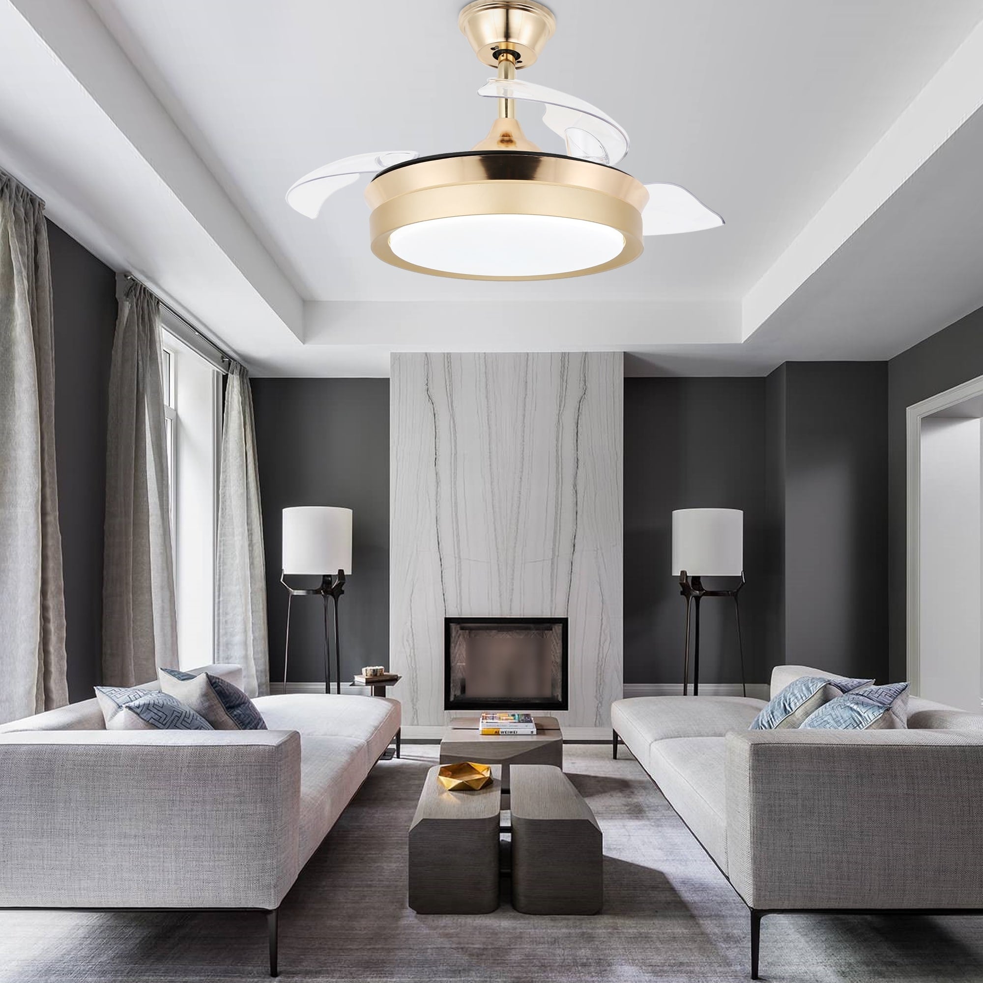 Ventilateur de plafond rétractable moderne Bella Depot 36 avec éclairage LED, pales réversibles à 6 vitesses et télécommande