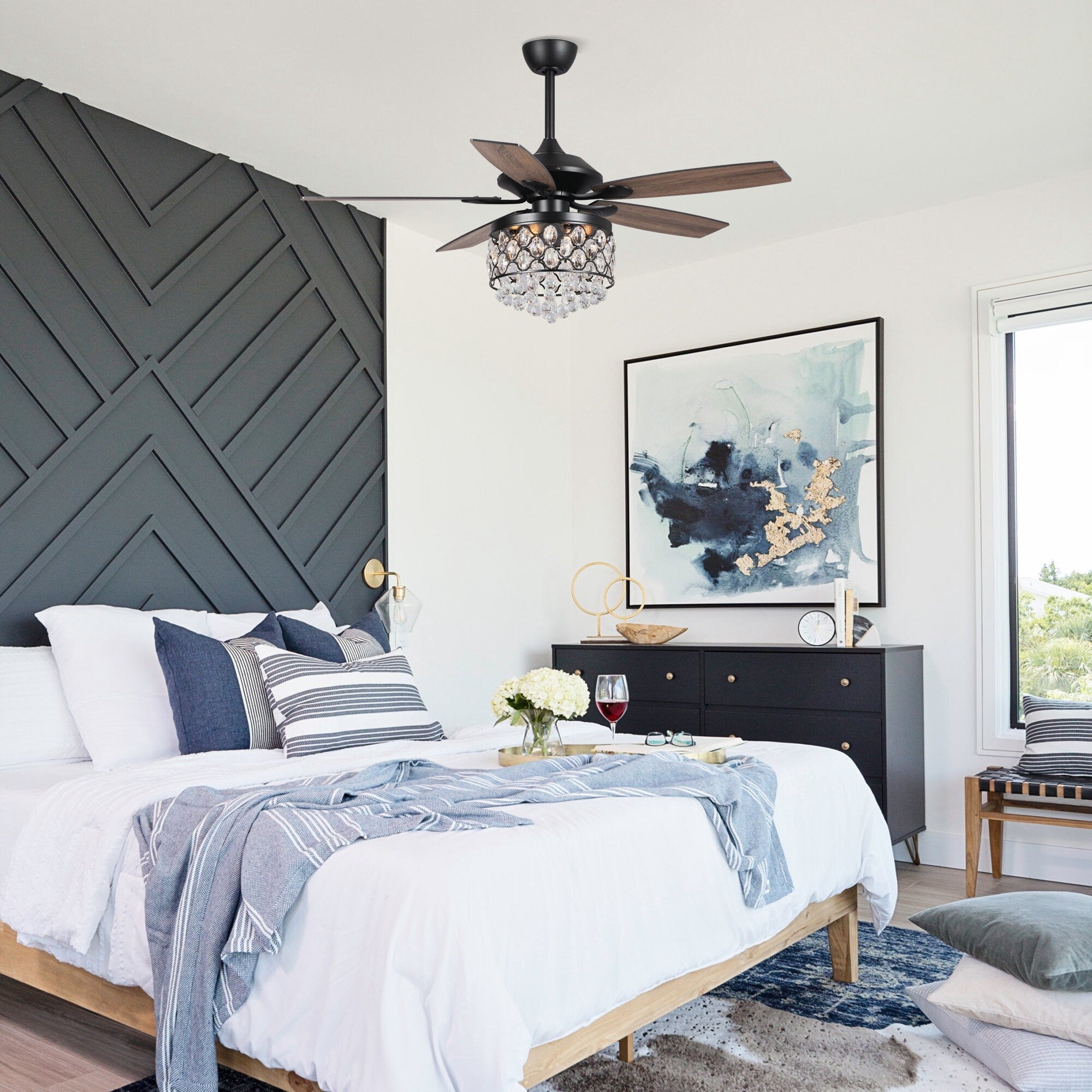 - Ventilateur de plafond moderne avec ornements en cristal scintillants