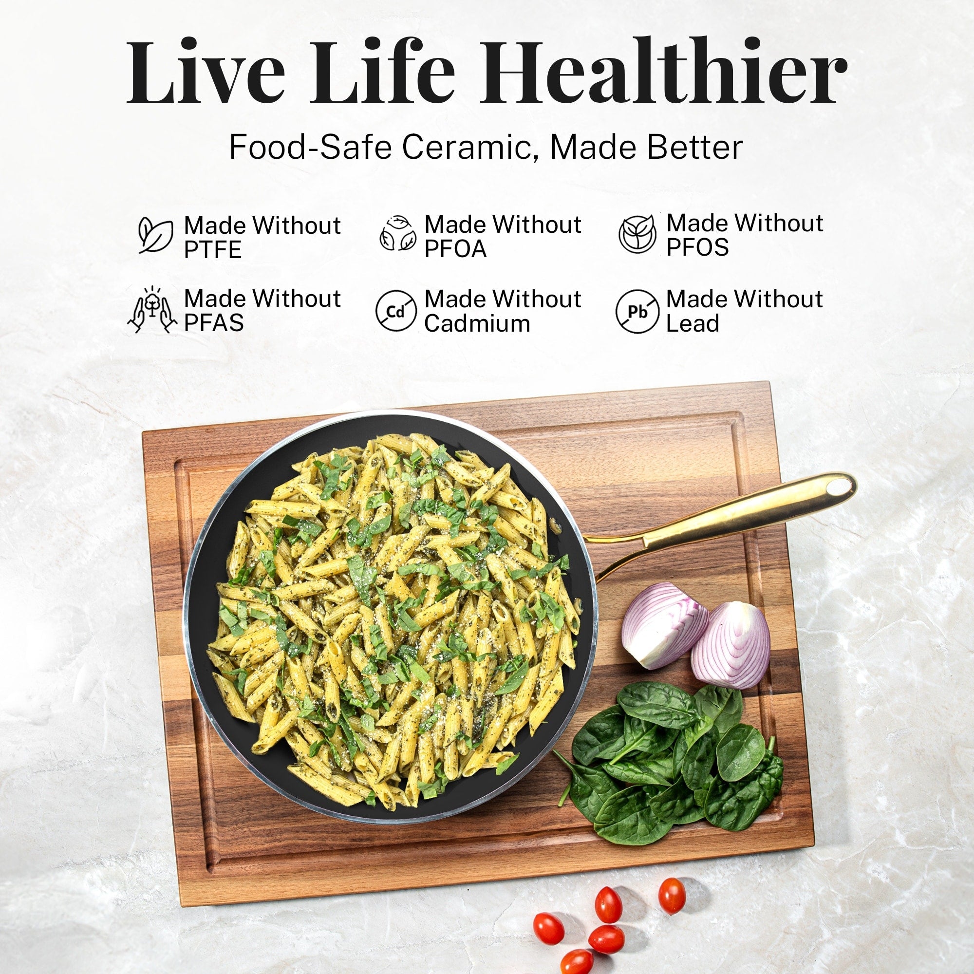 - Sûr et non toxique : Fabriqué sans PTFE, PFOA, PFOS, PFAS, plomb et cadmium, cet ensemble de batterie de cuisine favorise une cuisine plus saine pour vous et votre famille, ce qui en fait un choix écologique et sûr.