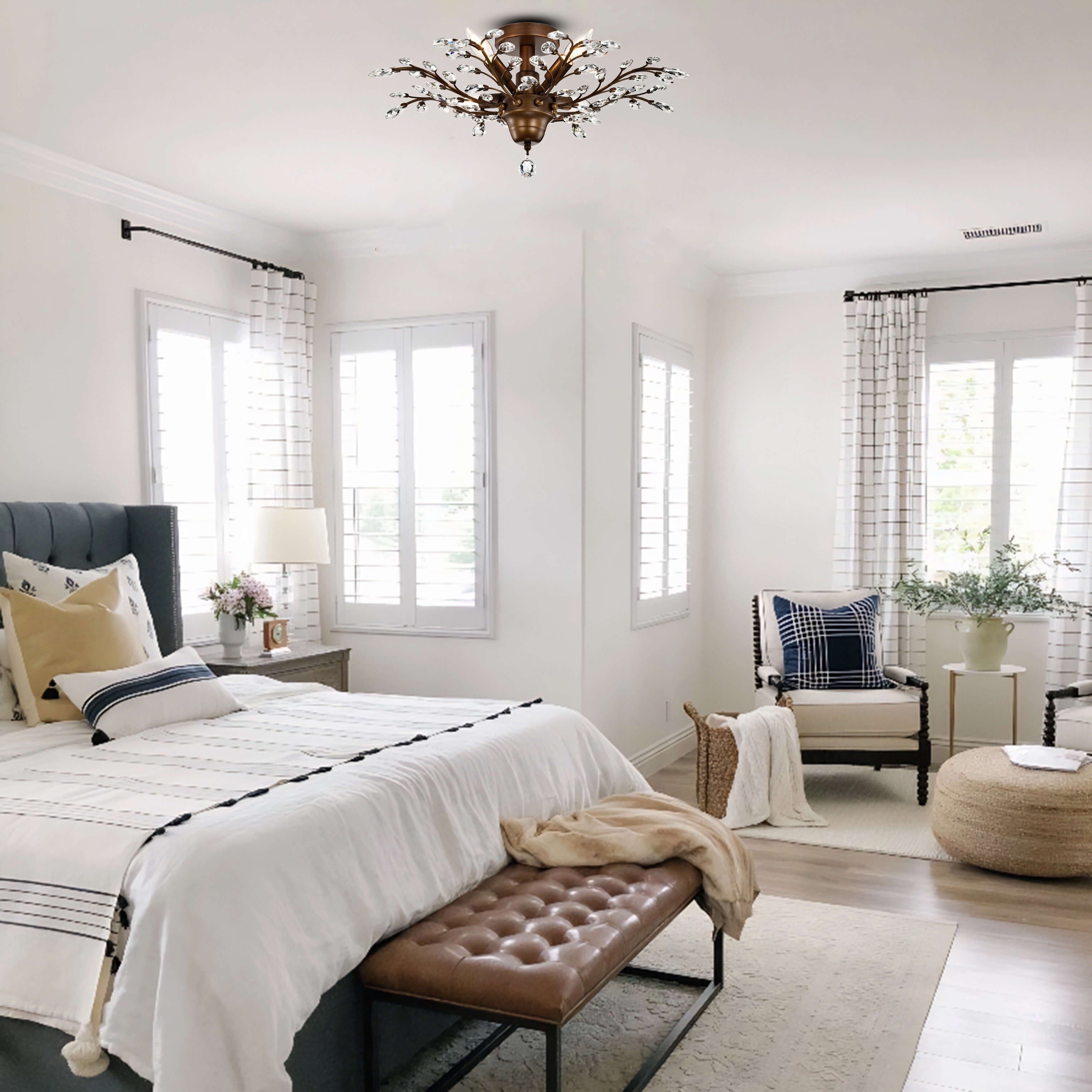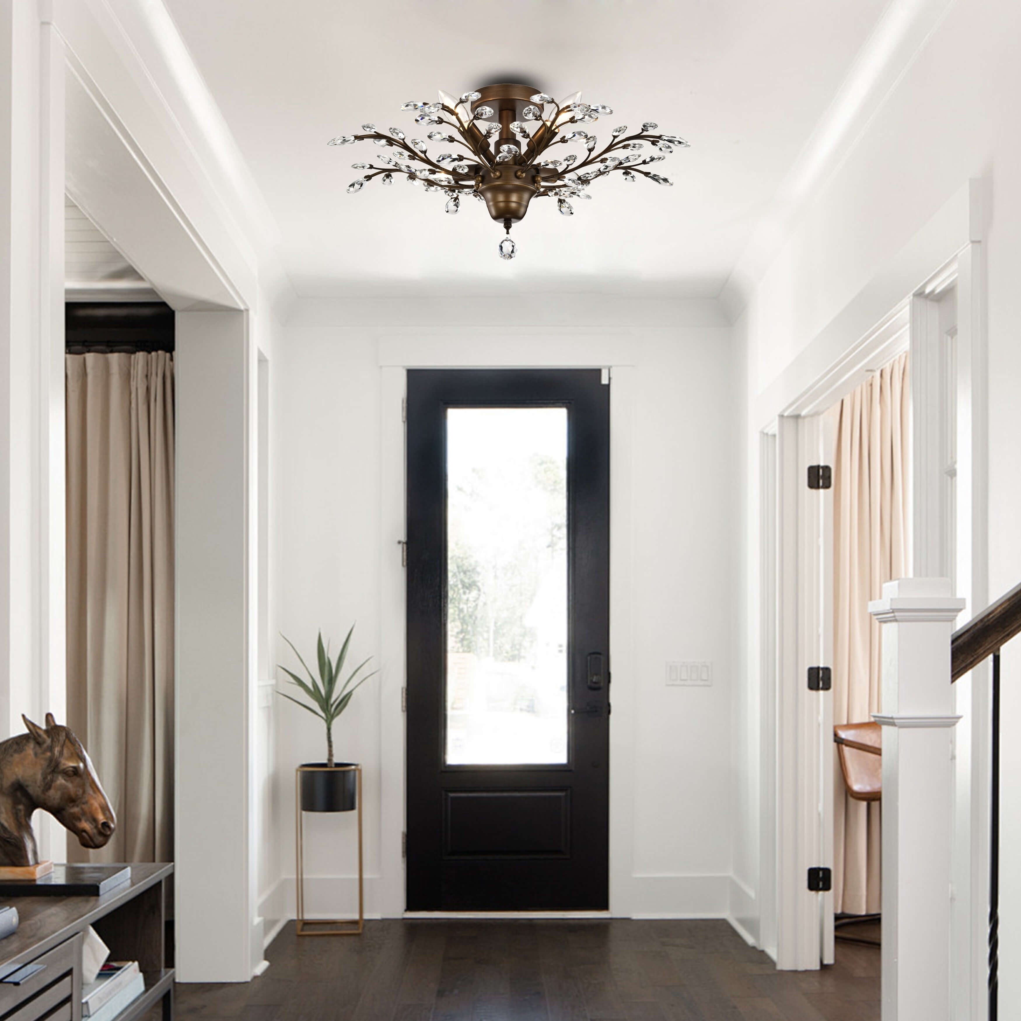 Plafonnier à 4 lumières en cristal avec feuilles de houx