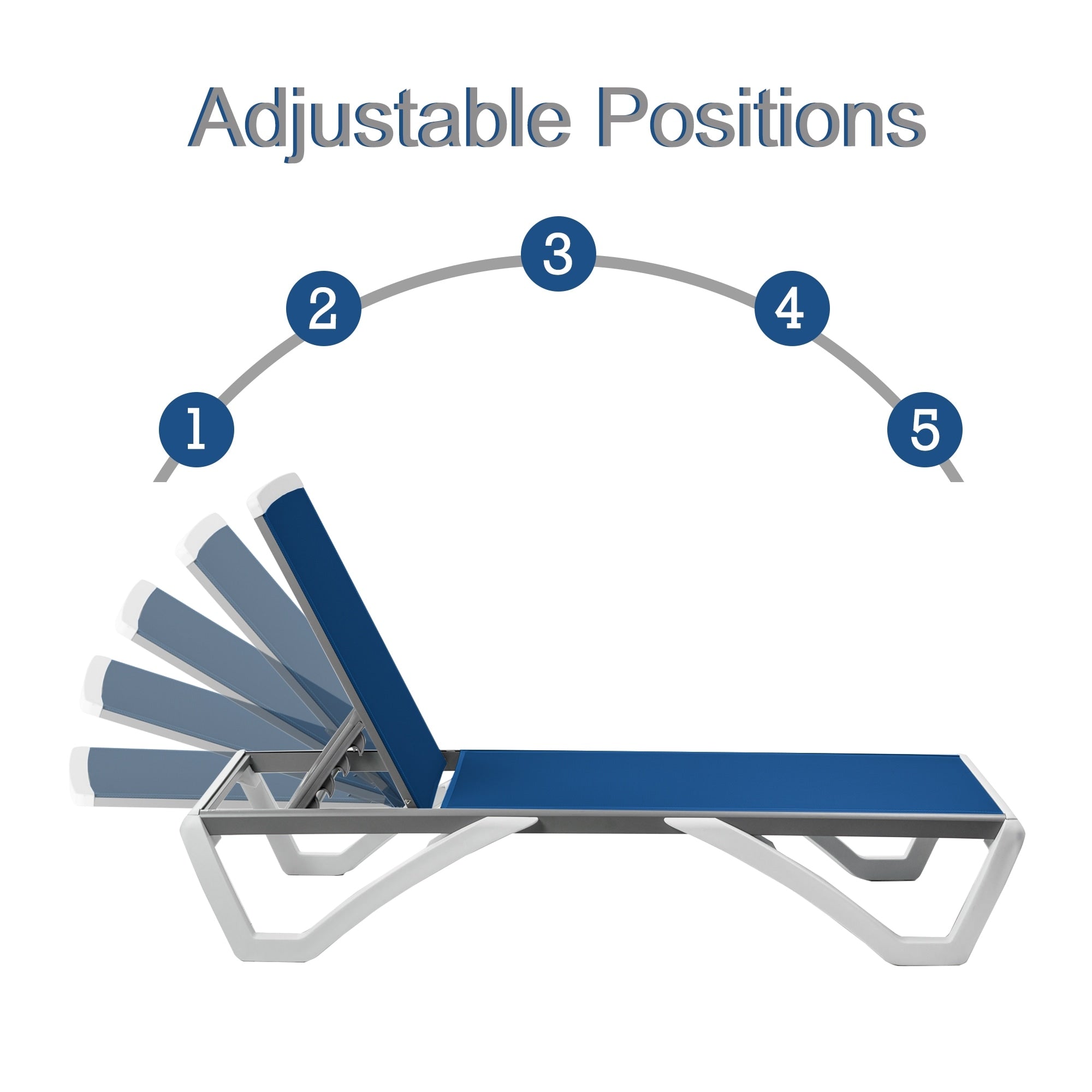 - CONFORTABLE : La toile s'adapte à votre corps et ses alvéoles laissent respirer les fortes chaleurs. Le dossier réglable vous permet de choisir parmi cinq niveaux de confort personnalisés. Vous pouvez vous allonger sur le ventre pour profiter du soleil.