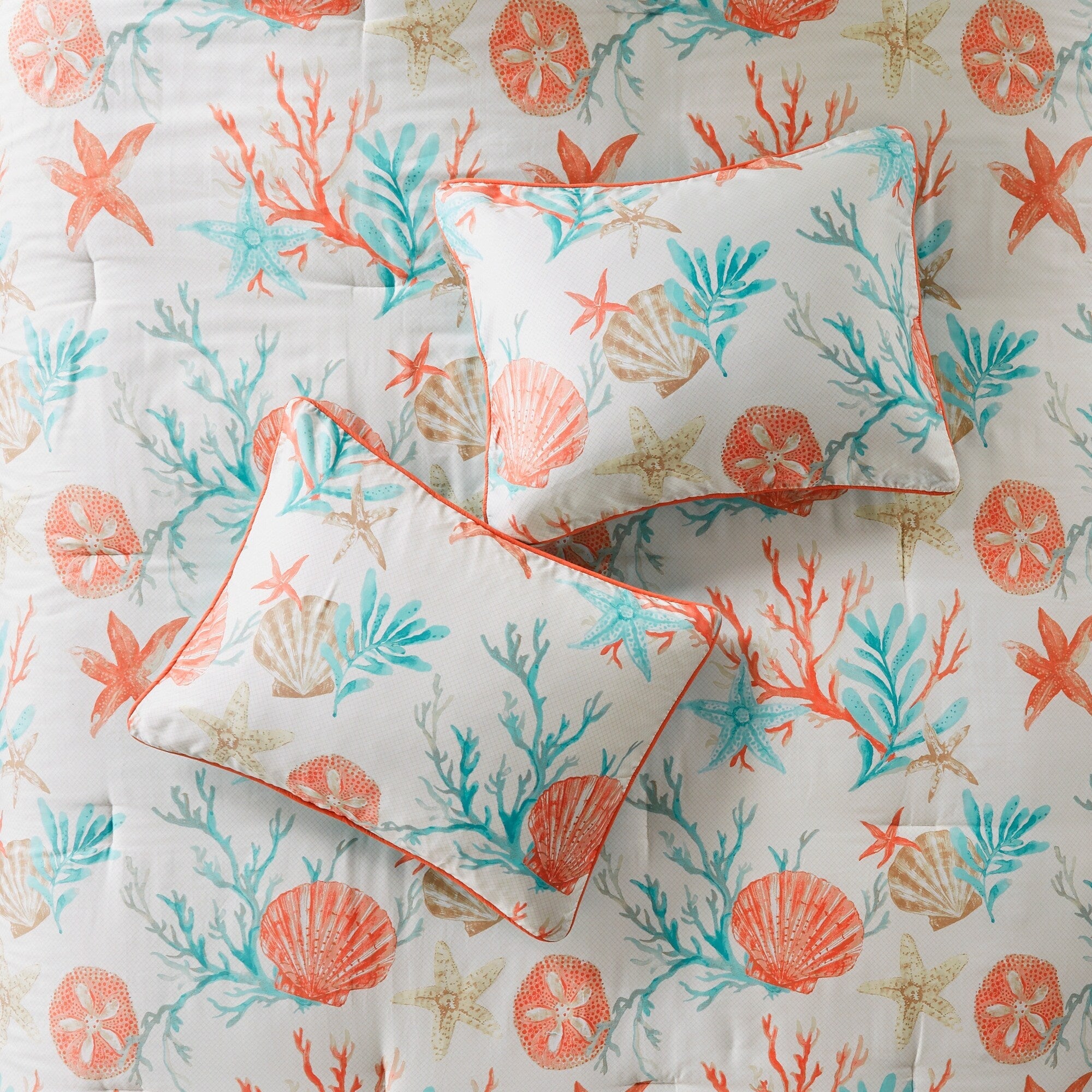 - Motif de coquillages, d'étoiles de mer et de coraux imprimés sur toute la surface, aux couleurs vives